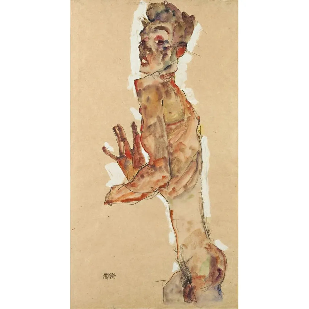 Konsttryck | Självporträtt med utspärrade fingrar - Egon Schiele
