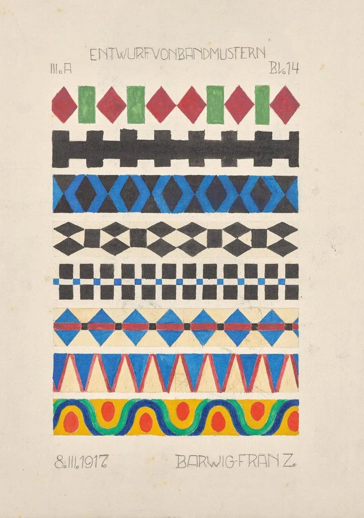 Franz Barwig den Äldre, verksam i början av 1900-talet, är erkänd som en pionjär inom dekorativ konst. Hans verk ingår i en kontext där konst och design börjar mötas, påverkade av konstnärliga rörelser som jugendstilen. Barwig hämtar inspiration från naturen och organiska former, och integrerar blommotiv i sina skapelser. Hans förmåga att omvandla abstrakta idéer till konkreta motiv gör honom till en viktig konstnär för sin tid. "Esquisse de motifs de bande" illustrerar perfekt hans innovativa tillvägagångssätt, där konst och funktionalitet förenas i en unik stil.