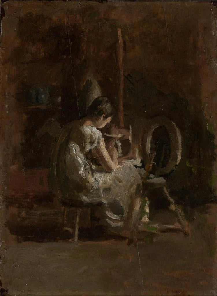 "Esquisses pour HomeSpun" de Thomas Eakins est une exploration délicate de la vie domestique et des interactions humaines. Cette œuvre, marquée par des traits de pinceau expressifs et une palette de couleurs douces, évoque une atmosphère chaleureuse et familière. Les personnages, souvent représentés dans des moments de tendresse ou de réflexion, sont saisis dans des postures naturelles qui témoignent de leur humanité. La technique de l'artiste, alliant précision et sensibilité, permet de ressentir la profondeur des émotions et des relations qui se tissent dans le cadre intime du foyer.