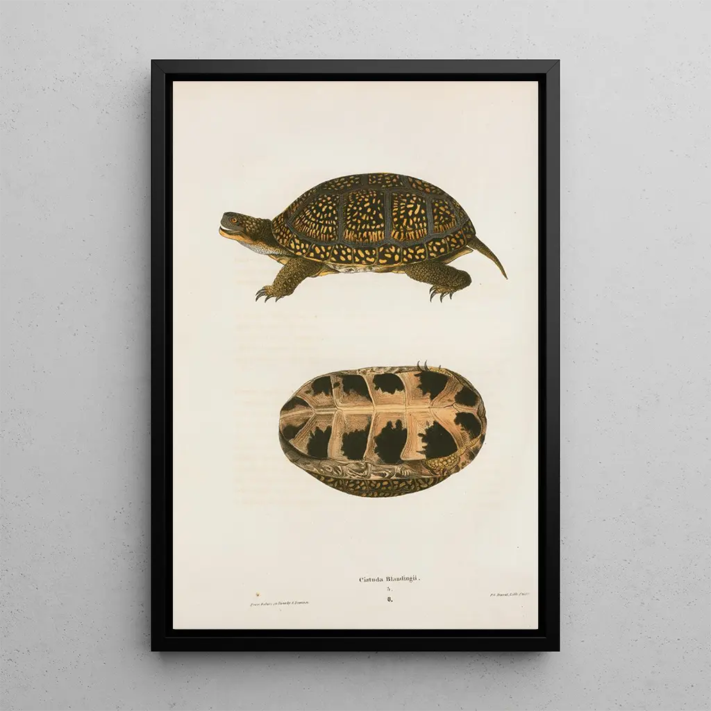 Konsttrycket "Tortuga de Florida" av John Edwards Holbrook fångar med finhet essensen av denna ikoniska art. Skuggorna av grönt och brunt blandas för att skapa en realistisk och livfull avbildning av sköldpaddan, medan reflektionerna i vattnet tillför en extra dimension till verket. Holbrook lyckas framkalla en lugn atmosfär, inbjudande betraktaren att dyka in i den fascinerande vattensvärlden av denna varelse, en symbol för den biologiska mångfalden.