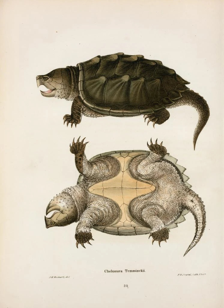 Målning av sköldpadda med ormliknande hals Temminckii - John Edwards Holbrook | Konsttryck