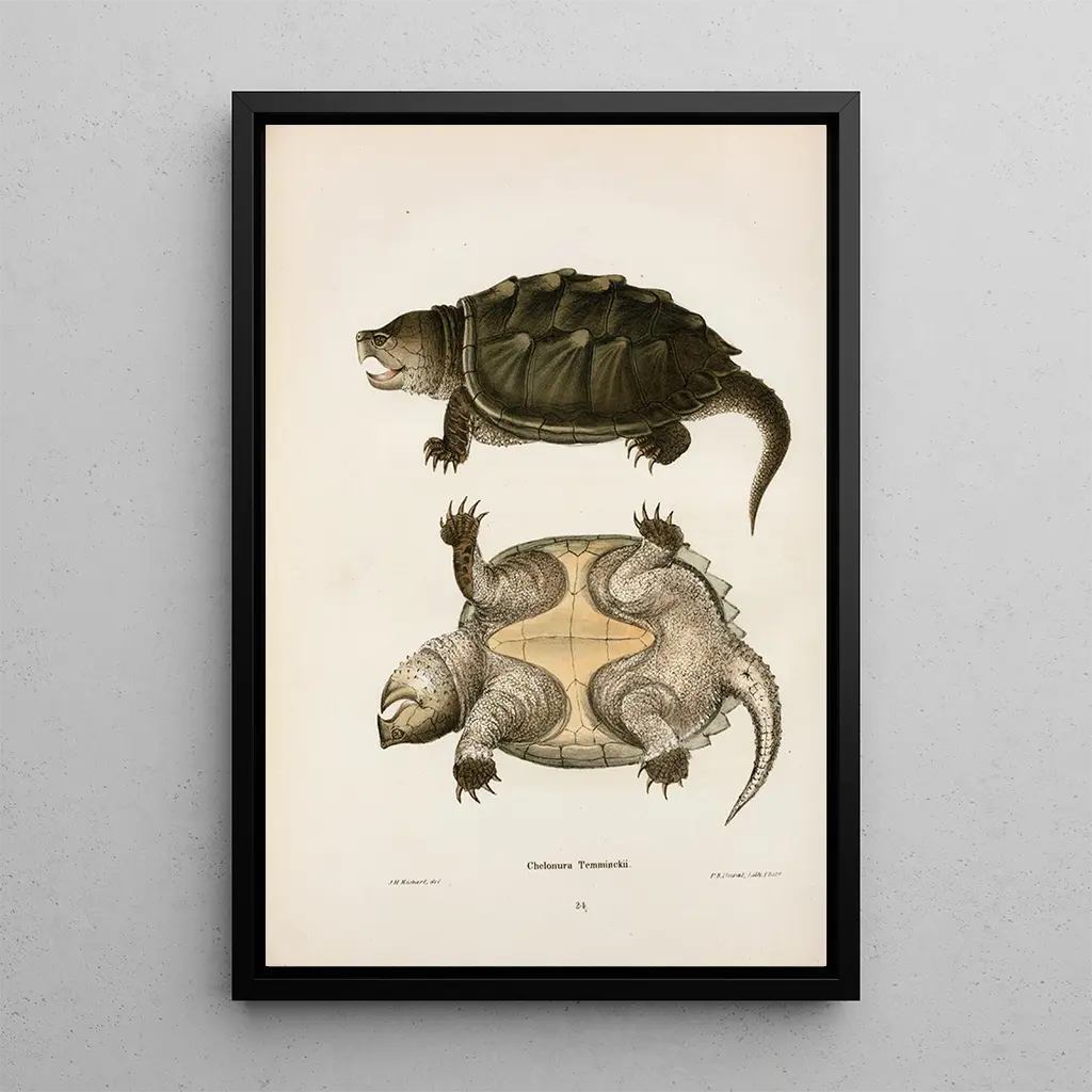 La konsttryck de la Tortue à cou de serpent Temminckii constitue un ajout décoratif idéal pour divers espaces, que ce soit dans un salon, un bureau ou une chambre. Sa représentation réaliste et captivante apporte une touche d'élégance et de curiosité, tout en éveillant l'intérêt pour la biodiversité. La qualité de l'impression garantit une fidélité remarquable aux couleurs et aux détails de l'œuvre originale, offrant un attrait esthétique indéniable. En intégrant cette toile dans votre décoration, vous créez un environnement inspirant, où l'art et la nature se rencontrent harmonieusement, enrichissant ainsi votre espace de vie.
