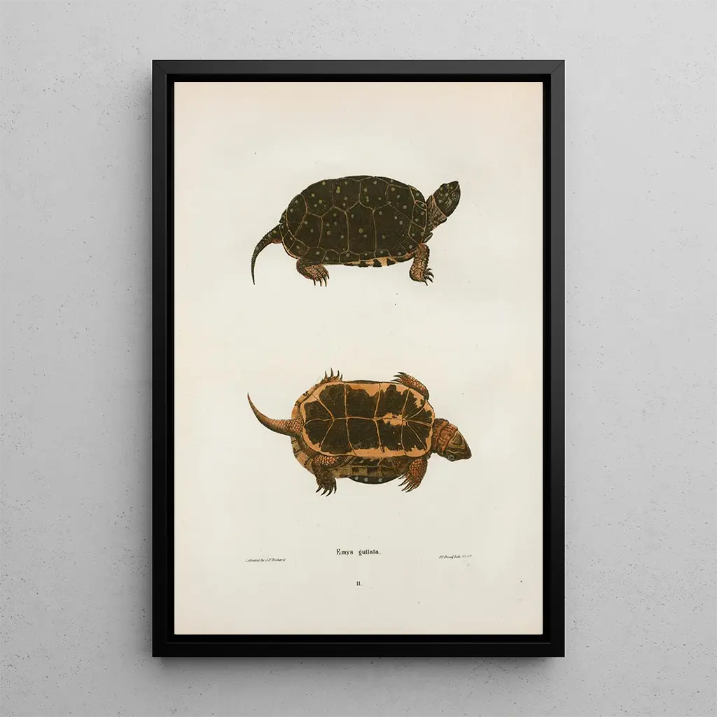 John Edwards Holbrook, naturalist och illustratör från 1800-talet, präglade sin tid med sina bidrag till zoologisk illustration. Hans passion för reptiler och amfibier ledde till att han skapade verk med stor vetenskaplig precision. Konsttrycket av Tortuga prickig, bland hans mest ikoniska verk, vittnar om hans engagemang för att troget avbilda faunan. Holbrook lyckades förena konst och vetenskap, vilket påverkade hur djurarter uppfattades under hans tid. Hans arv består, och gör honom till en oumbärlig figur inom naturalistisk illustration.