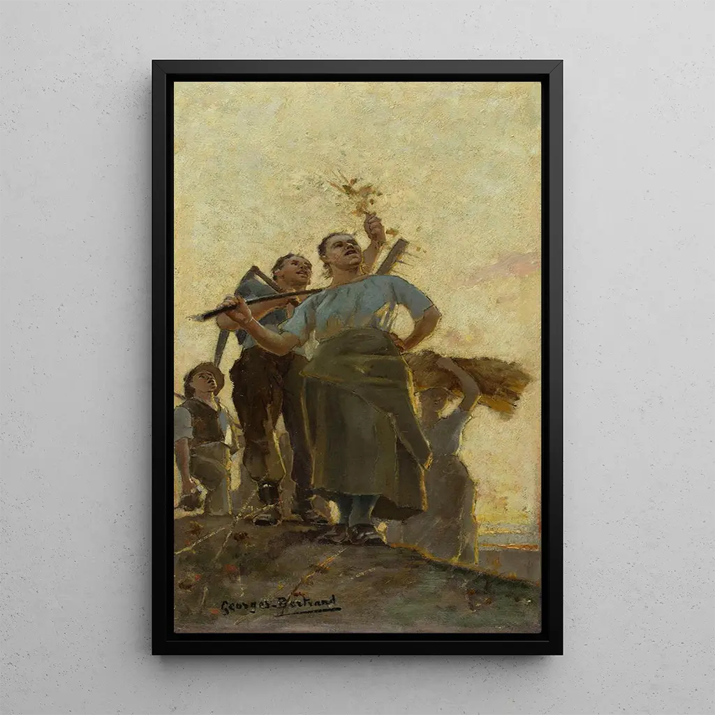 Konsttrycket av La moisson av Georges Bertrand framkallar skönheten i jordbruksarbete och den rika landsbygden. Detta verk skildrar bönder i full aktivitet, som skördar frukterna av sitt slit under en ljus himmel. De livfulla färgerna, som blandar gyllene gult och djupa grönt, skapar en glad och dynamisk atmosfär. Bergants teknik, som förenar impressionism och realism, gör det möjligt att känna värmen från solen och arbetarnas ansträngning. Varje penseldrag verkar fånga själva essensen av naturen, och hyllar enkelheten och skönheten i livet på landet.