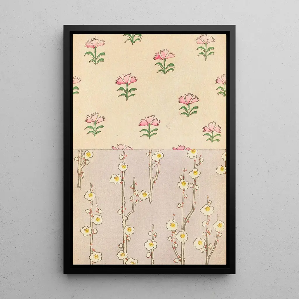 Konsttrycket av Bijutsukai Pl30 fördjupar oss i en värld där naturen och konsten möts med elegans. De livfulla färgerna och de blomsterinspirerade mönstren flätas samman för att skapa en lugnande, nästan meditativ atmosfär. Tekniken för ukiyo-e, som är karakteristisk för japansk konst, lyfts fram här och erbjuder en rik textur och ett fascinerande ljusspel. Varje detalj, från de delikata kronbladen till de subtila nyanserna, inbjuder till en förlängd eftertanke, där man nästan kan känna doften av blommorna. Detta verk är en sann hyllning till naturens flyktiga skönhet.