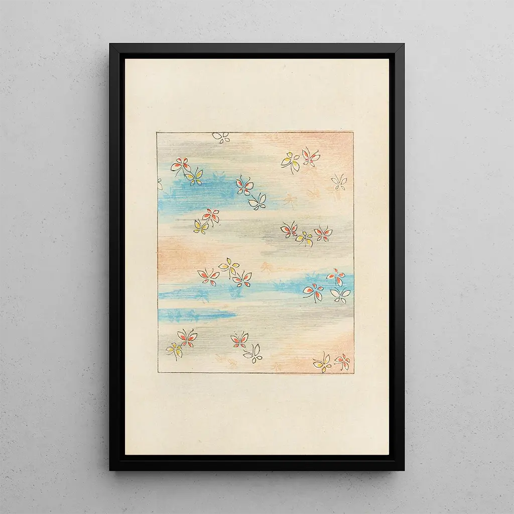 Konsttrycket av Bijutsukai Pl7 bjuder in oss att upptäcka den praktfulla blomsterornamentiken, typisk för japansk konst. Detta verk av Furuya Korin utmärker sig genom sin palett av mjuka färger och sina delikata former, som väcker tankar om naturens skörhet. De minutiösa detaljerna och den harmoniska kompositionen skapar en atmosfär av fred och lugn. Varje element i målningen verkar berätta en historia och förflyttar betraktaren till en värld där den flyktiga blomsterskönheten lyfts fram med stor finess.