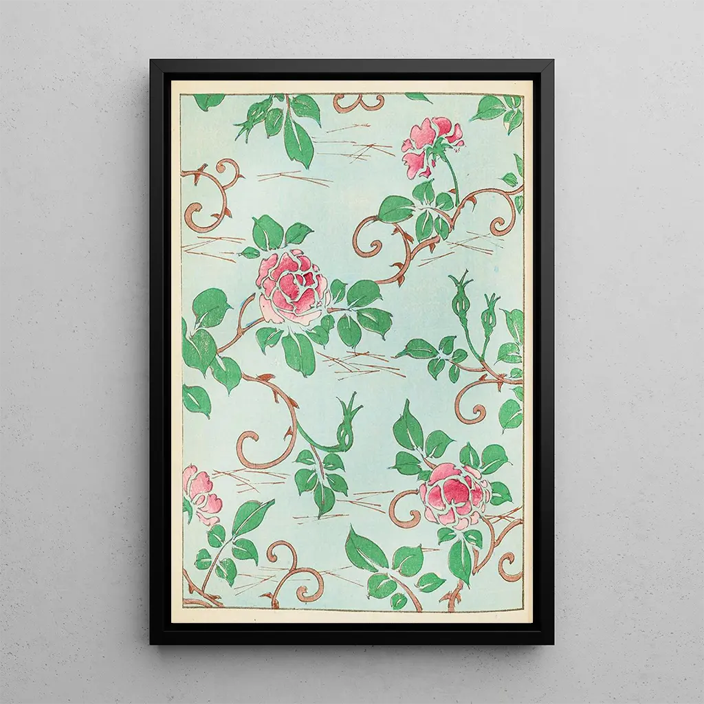 Konsttrycket av Bijutsukai Pl33 framstår som en verklig blomster symfoni, där varje blomblad tycks vibrera under ljusets påverkan. De livfulla färgerna, som sträcker sig från djupa röda till lugnande gröna, flätas samman för att skapa en harmonisk och dynamisk komposition. Tekniken som konstnären använder, som blandar element av målning och ukiyo-e, ger en unik djup och textur till detta konsttryck. Atmosfären som utstrålar från detta verk är både glad och kontemplativ, vilket inbjuder betraktaren att fördjupa sig i en värld där naturen hyllas med passion.