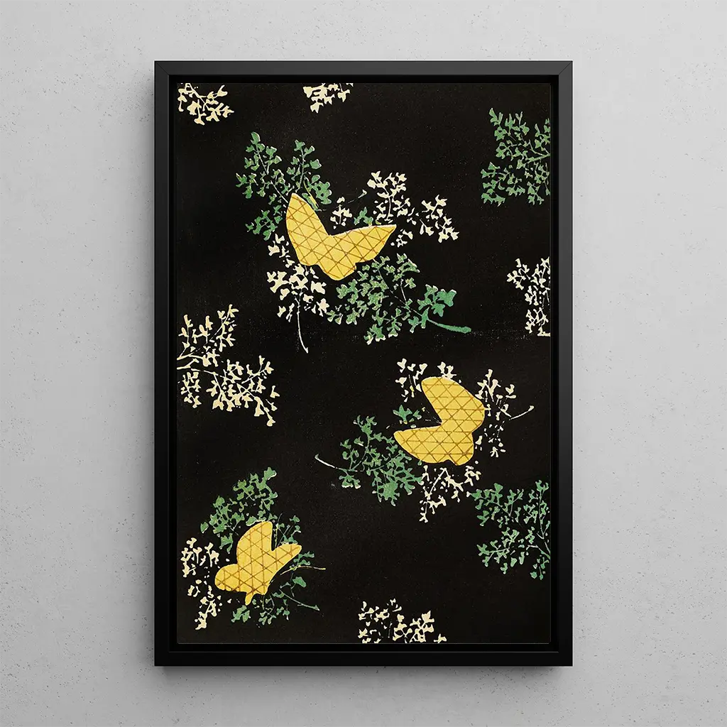 Den konsttryck av Bijutsukai Pl56 förflyttar oss till en värld där naturen hyllas med grace och poesi. De livfulla färgerna och de blomsterinspirerade mönstren flätas samman harmoniskt, vilket skapar en komposition som är både dynamisk och lugnande. Tekniken med sidenmålning, som är karakteristisk för Furuya Korin, ger detta verk en ljusstyrka och djup som fängslar betraktaren. Varje detalj, från de delikata kronbladen till de frodiga bladen, tycks vibrera av ett eget liv och bjuder in åskådaren att fördjupa sig i denna skildring av naturlig skönhet.