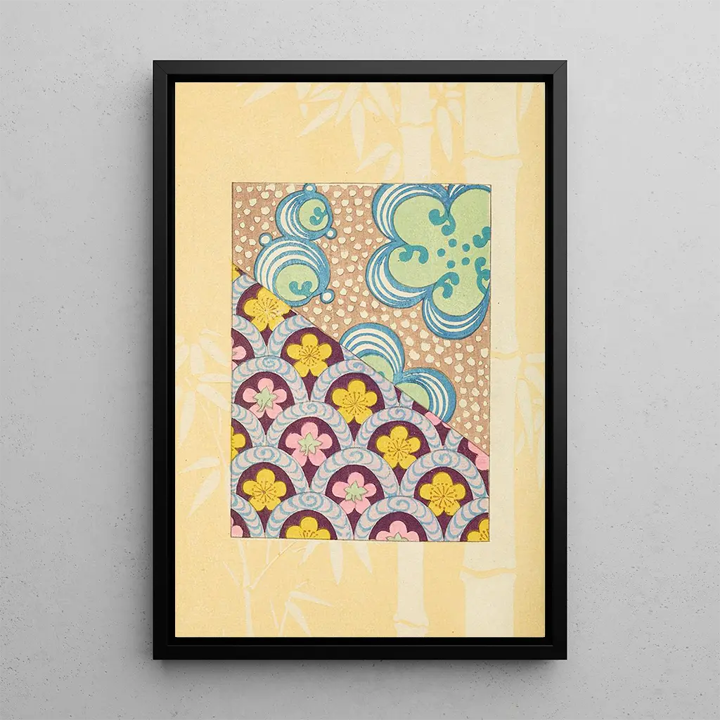 Konsttrycket av Bijutsukai Pl77 tar oss med till en livfull värld där färgerna flätas samman i harmoni. De delikata mönstren och de organiska formerna framkallar en flytande dans, som fångar själva essensen av naturen. Furuya Korins teknik, som använder rika pigment och uttrycksfulla penseldrag, skapar en dynamisk och levande atmosfär. Varje detalj i detta verk är noggrant genomtänkt, vilket ger en fängslande visuell upplevelse som inbjuder till flykt och drömmande.