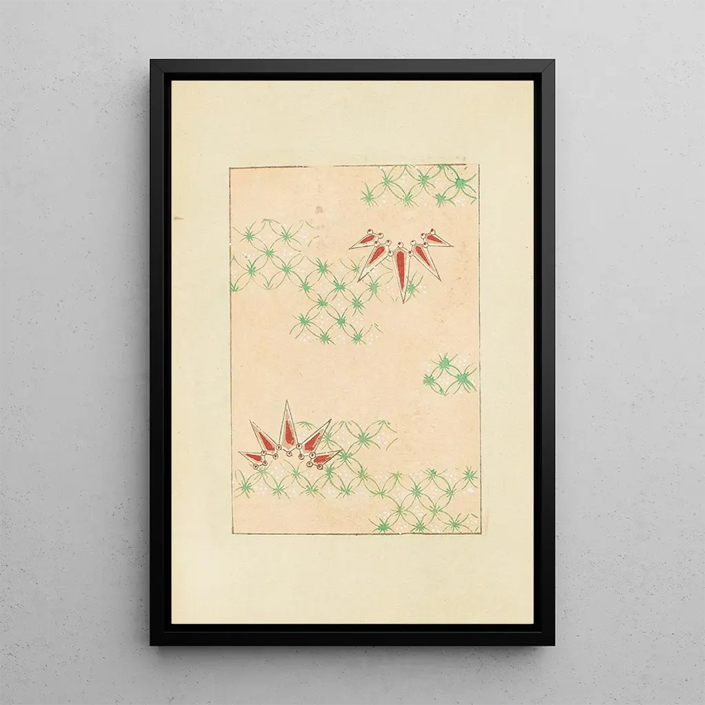 Konsttrycket av Bijutsukai Pl160 fördjupar oss i en värld där naturen och konsten möts med en slående harmoni. De livfulla färgerna, som sträcker sig från djupa blå nyanser till lysande röda, blandas för att skapa en atmosfär som är både lugn och dynamisk. Tekniken för ukiyo-e, som är karakteristisk för japansk konst, lyfts fram här och erbjuder en fin textur som inbjuder till utforskning. Varje detalj, från blomstermönster till geometriska element, verkar berätta en historia, en inbjudan till eftertanke och flykt.