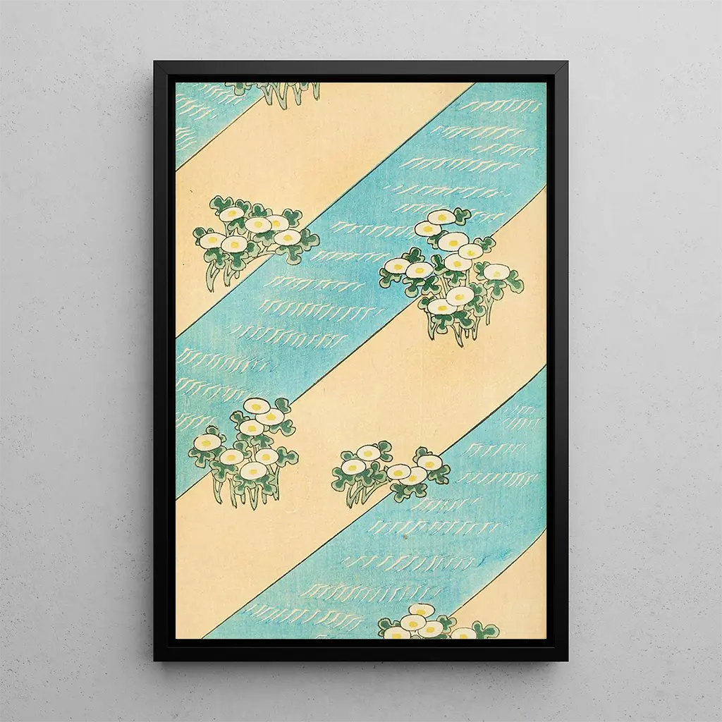 Konsttrycket av Bijutsukai Pl39 är ett fängslande verk som framkallar en atmosfär av lugn och skönhet. De delikata nyanserna av blått och guld blandas harmoniskt, vilket skapar en visuell balans som fångar ögat. Den förfinade tekniken hos konstnären, som använder stiliserade blomstermotiv, ger detta konsttryck en djup och textur som nästan känns påtaglig. Varje detalj, noggrant utarbetad, inbjuder till en förlängd eftertanke, vilket gör att betraktaren kan fördjupa sig i en värld av visuell poesi.