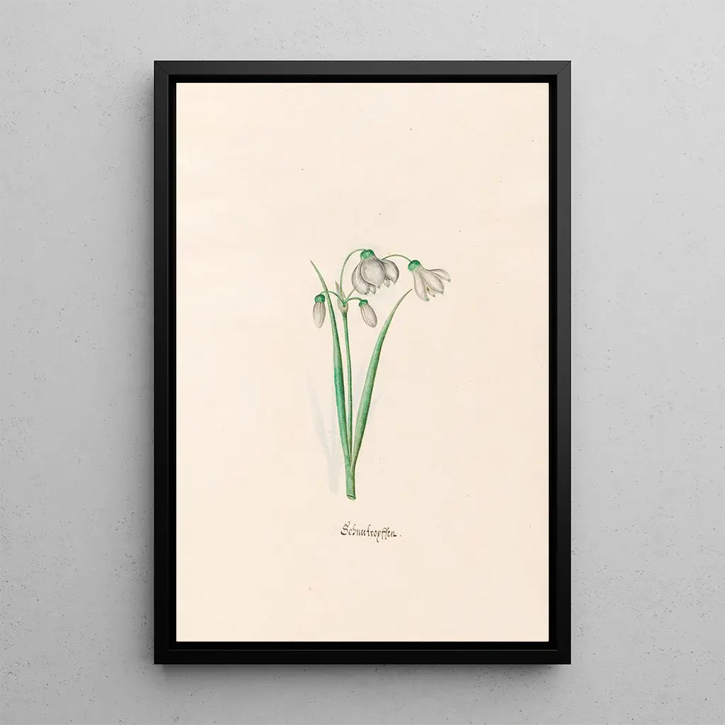 Konsttrycket Flocons de neige av Magdalena Rosina Funck fångar magin av ett vinterlandskap. De vita och silverfärgade nyanserna framkallar den rena snöns oskuld, medan blåa inslag tillför en lugnande djup. Den delikata kompositionen, där varje snöflinga tycks sväva med grace, skapar en atmosfär av lugn och ro. Funck, med sin förfinade teknik, lyckas förmedla vintermånadernas flyktiga skönhet och bjuder in betraktaren att drömma sig bort till en värld av frid och stillhet.
