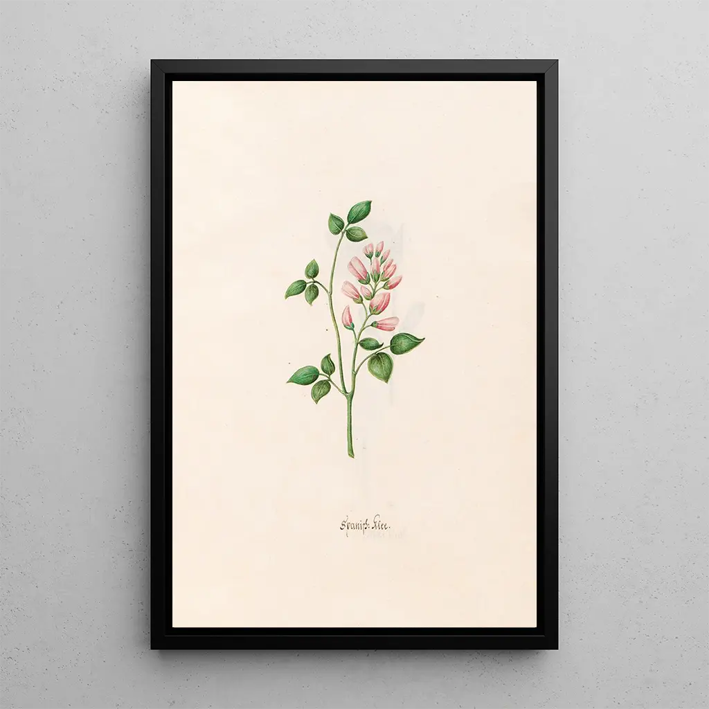 Konsttrycket "Trèfle espagnol" av Magdalena Rosina Funck är en verklig hyllning till blomstrande skönhet. De livfulla färgerna på blommorna, från intensiv rosa till frodig grönt, blandas harmoniskt och skapar en glad och lugnande atmosfär. Konstnärens teknik, som använder delikata och precisa penseldrag, ger liv åt varje blomblad, varje blad, som om man nästan kunde känna doften av blommorna. Detta konsttryck inbjuder till eftertanke, drömmeri, och förflyttar betraktaren till en frodig trädgård där naturen blomstrar.