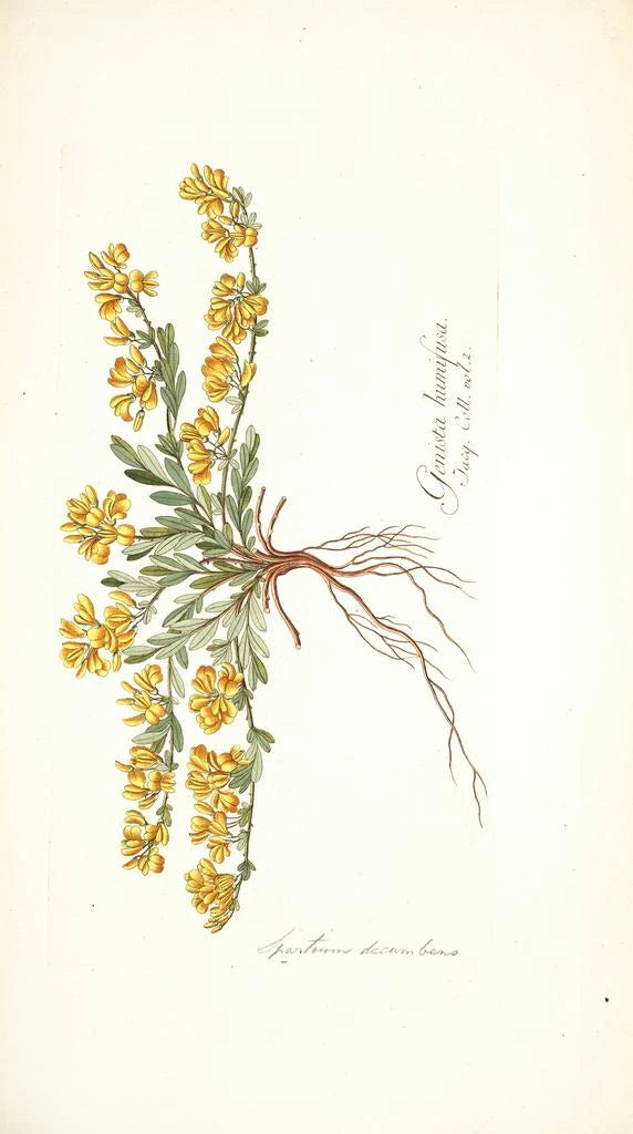 Nikolaus Joseph Freiherr von Jacquin, botanist och konstnär från 1700-talet, präglade sin tid med sina bidrag till vetenskapen och konsten. Född 1727 i Wien, påverkades han av upplysningstidens strömningar, som förespråkade observation och studier av naturen. Hans resor genom Europa och Västindien gjorde det möjligt för honom att upptäcka en mängd växter, som han sedan immortaliserade i sina verk. "Spartium decumbens" ingår i denna tradition av utforskning och dokumentation, vilket visar på botaniken betydelse under hans tid och sambandet mellan konst och vetenskap.