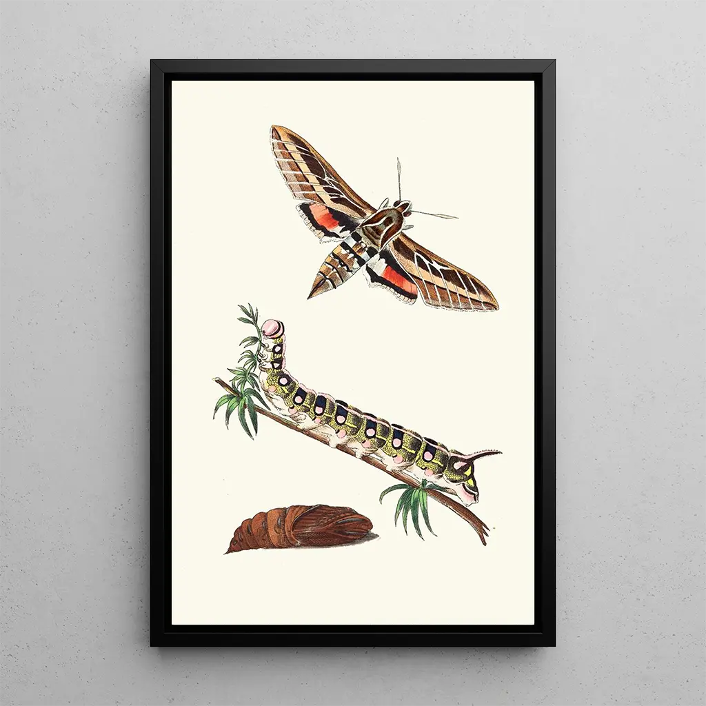Konsttrycket Sphinx ligné av George Shaw fördjupar oss i en livfull värld där djurlivet avslöjar sig med sällsynt intensitet. Verket, skapat med strålande färger och noggranna detaljer, framhäver en fjäril med delikata, nästan hypnotiska mönster. Tekniken med akvarell, använd med mästerskap, ger hela kompositionen en lätthet och ett flyt som fängslar blicken. Atmosfären som utstrålar från denna målning framkallar en harmoni mellan konst och natur, och bjuder in betraktaren att förundras över den flyktiga skönheten i det vilda livet.