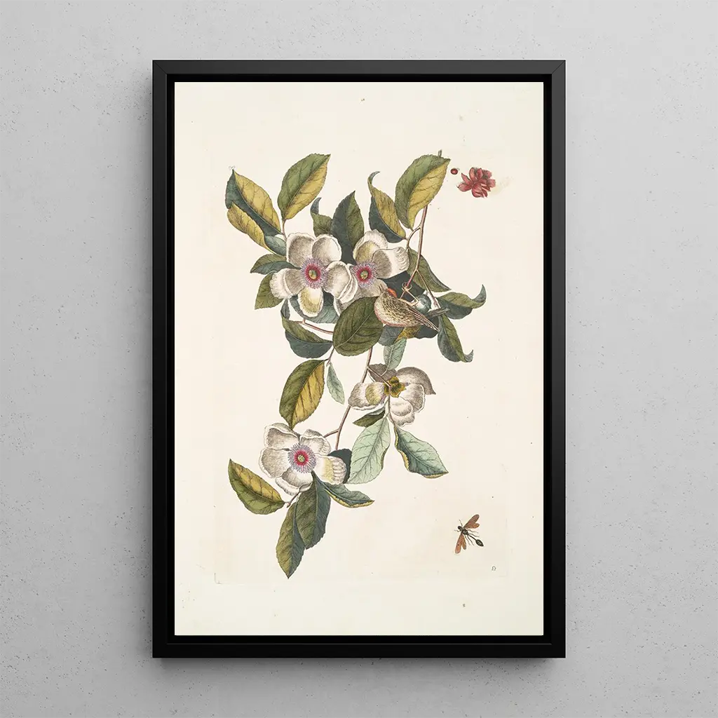 Konsttrycket av tavlan Steuartia Regulus Cristatus Vespa Ichneumon är ett värdefullt tillskott till varje inredning. Oavsett om det är i ett vardagsrum, ett kontor eller ett sovrum, tillför denna duk en touch av natur och elegans. Dess utskriftskvalitet och trohet mot detaljer gör den till ett konstverk som fångar blickar och väcker beundran. Genom att integrera detta verk i ditt utrymme skapar du en varm och inspirerande atmosfär, samtidigt som du hyllar Mark Catesbys konstnärliga arv.