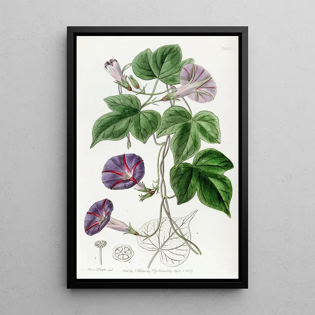 Dans cette œuvre vibrante, Sydenham Edwards capture la beauté délicate du liseron majeur à trois lobes. Les nuances de vert et de violet s'entrelacent, créant une atmosphère à la fois apaisante et dynamique. La technique de l’aquarelle permet une fluidité des couleurs, tandis que les détails minutieux des feuilles et des fleurs révèlent un profond respect pour la nature. Chaque pétale semble prendre vie, invitant le spectateur à s'immerger dans cet univers floral. Cette konsttryck du liseron majeur à trois lobes est bien plus qu'une simple représentation ; elle évoque une connexion intime avec le monde végétal.