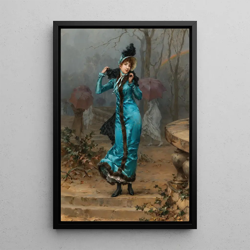 I "Abri contre la Tempête" skildrar Frederik Hendrik Kaemmerer en gripande scen där den vilda naturen möter den mänskliga sårbarheten. Denna konsttryck illustrerar ett ögonblick av vila, där karaktärer hittar skydd under ett skydd, som symboliserar skydd och hopp i oroliga tider. De mörka och stormiga himmelstonerna kontrasterar med de varma nyanserna av skyddet, vilket skapar en atmosfär som är både dramatisk och tröstande. Kaemmerers mästerskap i att återge texturer och ljus ger liv åt denna scen, och bjuder in betraktaren att känna intensiteten i ögonblicket.