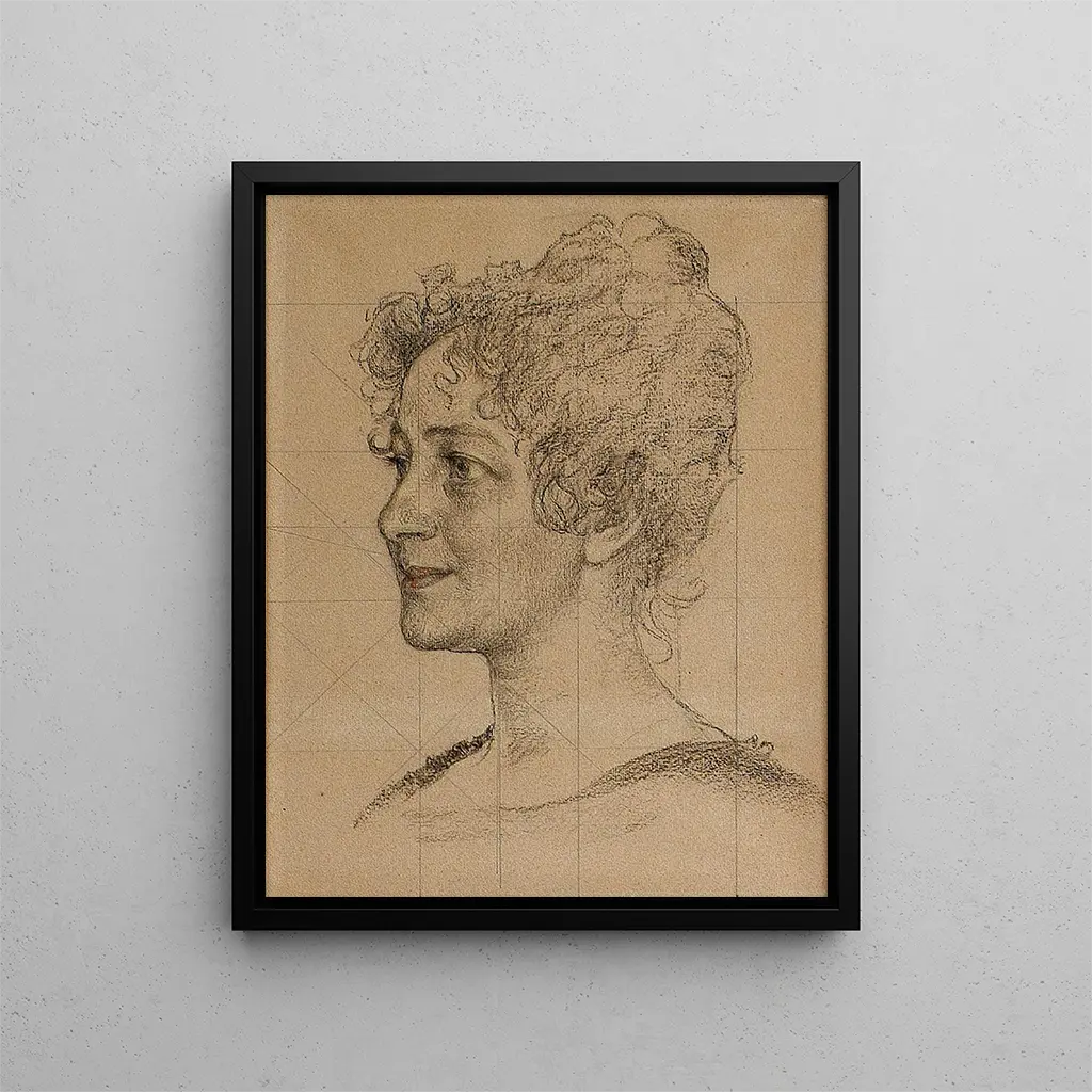 Reproduktion Studie av huvudet fru Signe Thiel - Carl Larsson – Fängslande introduktion L'œuvre "Studie av huvudet fru Signe Thiel" av Carl Larsson är ett öppet fönster mot intimiteten i ett ögonblick fångat i tiden. Denna studie, som inte bara avslöjar konstnärens exceptionella talang utan också djupet av mänskliga känslor, för oss in i den delikata och raffinerade världen av slutet av 1800-talet. Larsson, mästare av den svenska rörelsen, lyckas fånga skönheten och känsligheten i ett ansikte, och erbjuder därigenom en poetisk vision av sin modell. Genom detta verk bjuder konstnären in oss att beundra det vardagliga, att uppskatta enkelheten i gester och uttryck som omger oss. Den mjuka belysningen som badar fru Thiels ansikte förstärker mildheten i hennes blick, och skapar en atmosfär som är både varm och introspektiv. Stil och särprägel av verket Originaliteten i "Studie av huvudet fru Signe Thiel" ligger i hur Carl Larsson förenar realism med en touch av romantik. Varje penseldrag verkar vara en smekning, en uppmärksamhet på varje detalj, oavsett om det gäller de delikata dragen i ansiktet eller de subtila nyanserna i huden. Konstnären använder en palett av mjuka färger som framkallar lugn och ro. Detta färgval, i kombination med en noggrann måleriteknik, ger verket en nästan eterisk lätthet. Larsson lyckas transcendera den enkla avbildningen för att erbjuda en verklig emotionell upplevelse, där betraktaren bjuds in att reflektera över tankar och känslor hos den avbildade kvinnan. Detta konstverk nöjer sig inte med att visa, det berättar en historia, om en kvinna, en tid, en unik konstnärlig känslighet. Konstnären och hans inflytande Carl Larsson, en ikonisk figur inom svensk konst, lyckades präga sin tid med sin innovativa metod och sin personliga syn på det inhemska livet. Påverkad av Arts & Crafts-rörelsen, utmärker han sig genom sin förmåga att förena konst med vardagslivet, och förvandlar därigenom vanliga scener till verkliga konstverk. Larsson spelade också en avgörande roll i att främja skandinavisk konst på den internationella scenen, och inspirerade många konstnärer världen över.