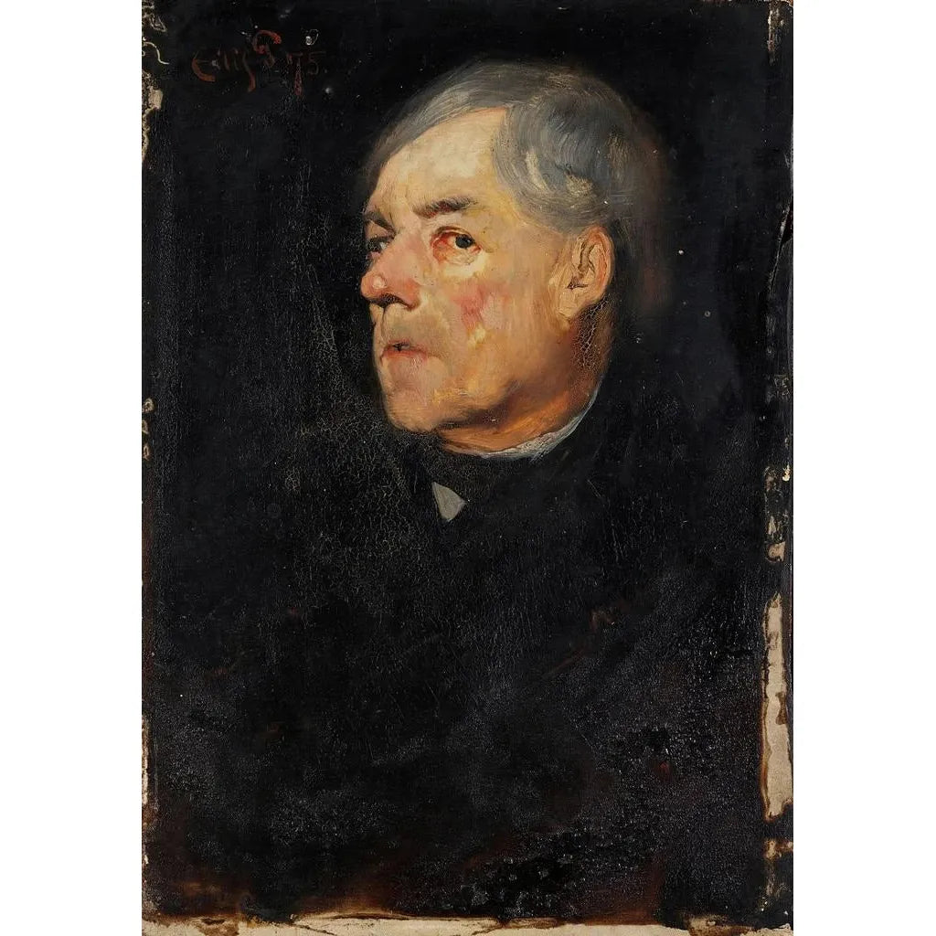 L'étude av en gammal man av Eilif Peterssen är ett gripande konsttryck som fångar visdom och erfarenhet från ett liv. De mörka färgerna och de fördjupade skuggorna skapar en atmosfär av melankoli och djup. Peterssen använder måleritekniker som framhäver rynkor och ansiktsdrag, vilket avslöjar den personliga historien hos hans modell. Uttrycket hos den gamle mannen, både lugnt och fullt av känslor, inbjuder betraktaren att reflektera över tidens gång och de minnen som samlas.