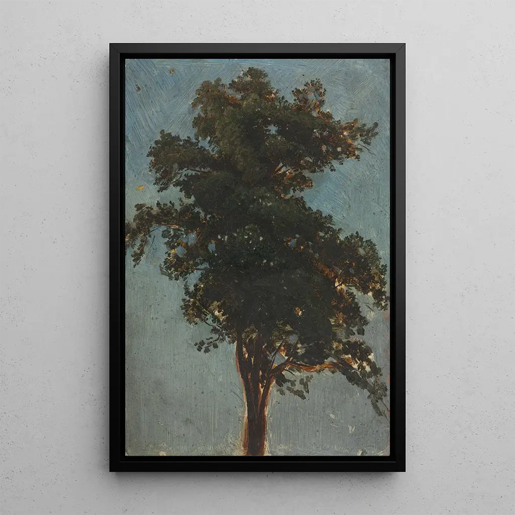 Konsttrycket "Studie av ett träd" av Alexandre Calame fördjupar oss i en värld där naturen uttrycker sig med kraft och finhet. Denna målning, rik på detaljer, framhäver ett majestätiskt träd, vars grenar sträcker sig med grace. De valda färgerna, från djupa gröna till varma bruna, framkallar en lugn och fridfull atmosfär. Konstnärens teknik, som blandar realism med en romantisk touch, inbjuder betraktaren att betrakta den råa skönheten i naturen. Varje penseldrag tycks andas liv, vilket gör detta träd nästan levande, som om det kunde berätta sina egna historier.