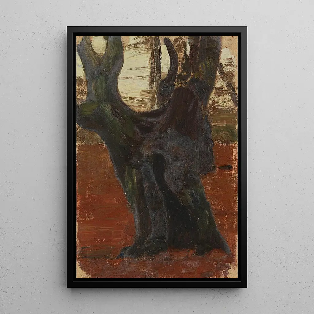 Gustav Kampmanns studie av träd är ett konsttryck som hyllar trädens storhet, dessa tysta jättevarelser som befolkar våra landskap. Tavelduken skildrar ett majestätiskt träd, vars grenar sträcker sig med grace och skapar en känsla av djup och lugn. Nyansen av grönt, brunt och gult blandas harmoniskt och skapar en lugnande atmosfär. Kampmanns teknik, präglad av precisa penseldrag och noggrannhet i detaljer, gör det möjligt att känna texturen av barken och rörelsen i bladen, vilket inbjuder betraktaren att fördjupa sig i naturen.