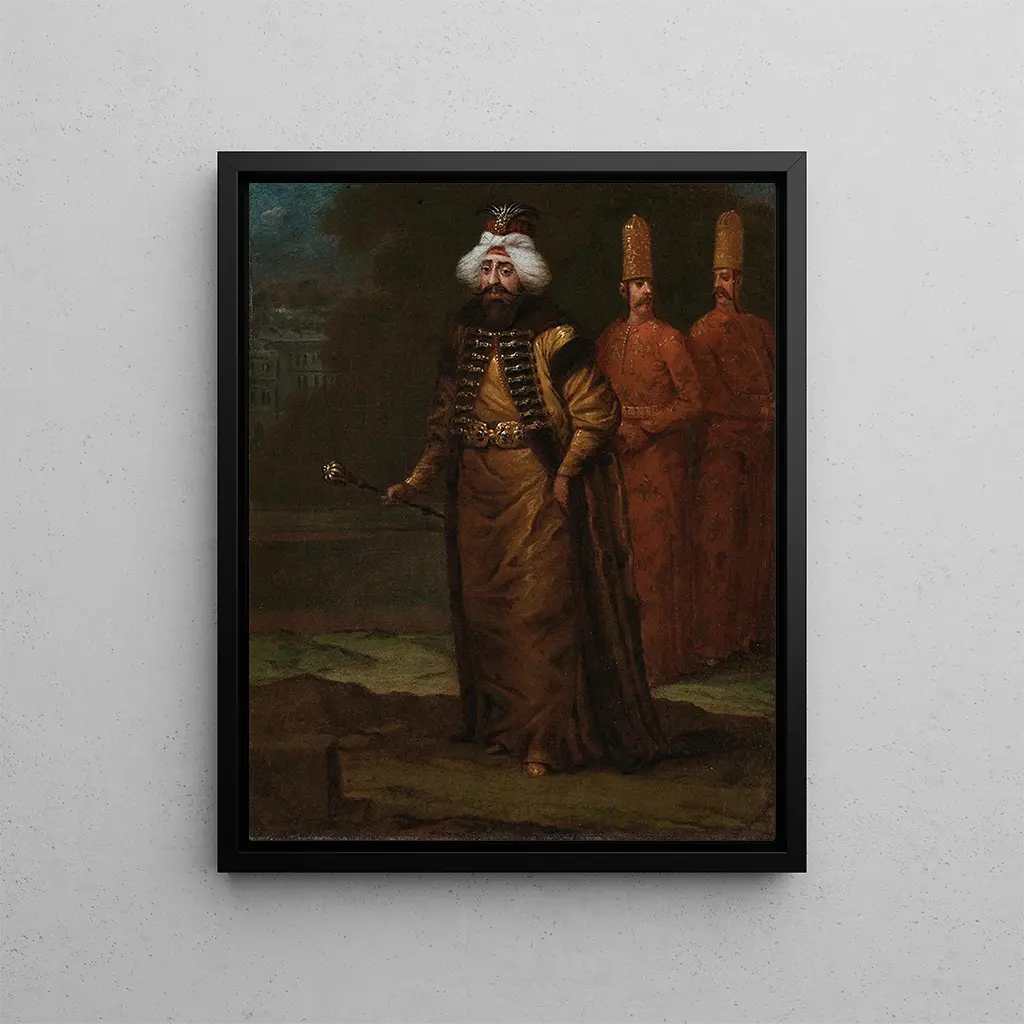 Denna vackra konstnärliga reproduktion av Sultan Ahmed III av Jean-Baptiste Vanmour är ett utmärkt val för att förhöja din inredning. Perfekt som ett konsttryck eller affisch för att skapa en elegant och kulturell atmosfär i ditt hem eller kontor.
