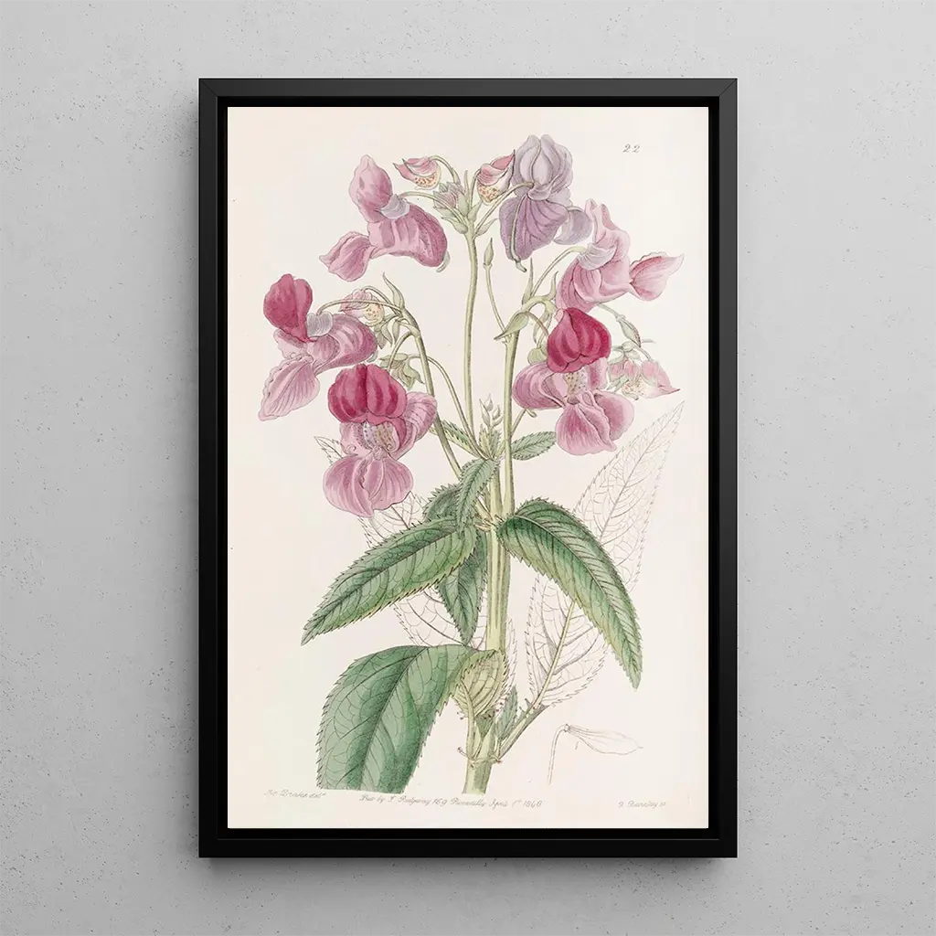 Den konsttryck av Baume glanduleux, utförd av Sydenham Edwards, fördjupar oss i en växtvärld av stor känslighet. De minutiösa detaljerna av blad och blommor, kombinerade med en palett av mjuka färger, skapar en lugnande atmosfär. Edwards, känd för sin vetenskapliga och konstnärliga metod, använder en graveringsteknik som framhäver växternas textur. Detta konsttryck inbjuder till eftertanke och avslöjar naturens gömda skönhet genom ett noggrant betraktande. Varje element är omsorgsfullt återgivet, vilket vittnar om ett djupt respekt för det studerade motivet.
