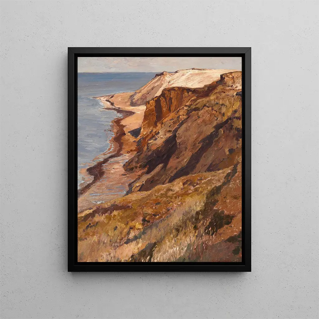 Bracht's stil utmärker sig genom sin behärskning av ljus och en palett av delikata färger, som ibland framkallar en mild morgonsol, ibland en melankolisk skymning. I "Côte de Sylt" använder konstnären flytande penseldrag för att skapa en vibrerande textur, som nästan gör rörelsen av vågorna och vindens andning påtaglig. Nyanser av blått och beige kompletterar varandra harmoniskt, medan gröna inslag i sanddynerna tillför en dimension av djup till hela verket. Detta konsttryck speglar en konstnärlig känslighet som förenar realism och impressionism, och låter varje detalj berätta en historia. Kompositionen är noggrant balanserad och guidar betraktarens blick genom landskapet, inbjuder till utforskning och upptäckten av naturens subtiliteter.