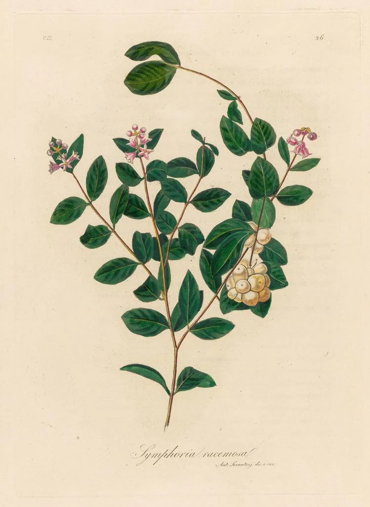 Gaetano Savi, botanist och konstnär från 1700-talet, är erkänd för sitt bidrag till vetenskaplig illustration. Hans arbete befinner sig i skärningspunkten mellan konst och vetenskap, där han lyckades fånga växternas skönhet med en anmärkningsvärt precision. Påverkad av naturalistiska strömningar från sin tid, lyckades Savi förena vetenskaplig noggrannhet med konstnärlig känslighet. Hans verk, inklusive Symphoria racemosa, vittnar om hans engagemang för att dokumentera biologisk mångfald samtidigt som han hyllar naturens estetik. Denna unika metod gjorde honom till en viktig figur inom botanisk illustration, i en tid då konst också användes för utbildning.