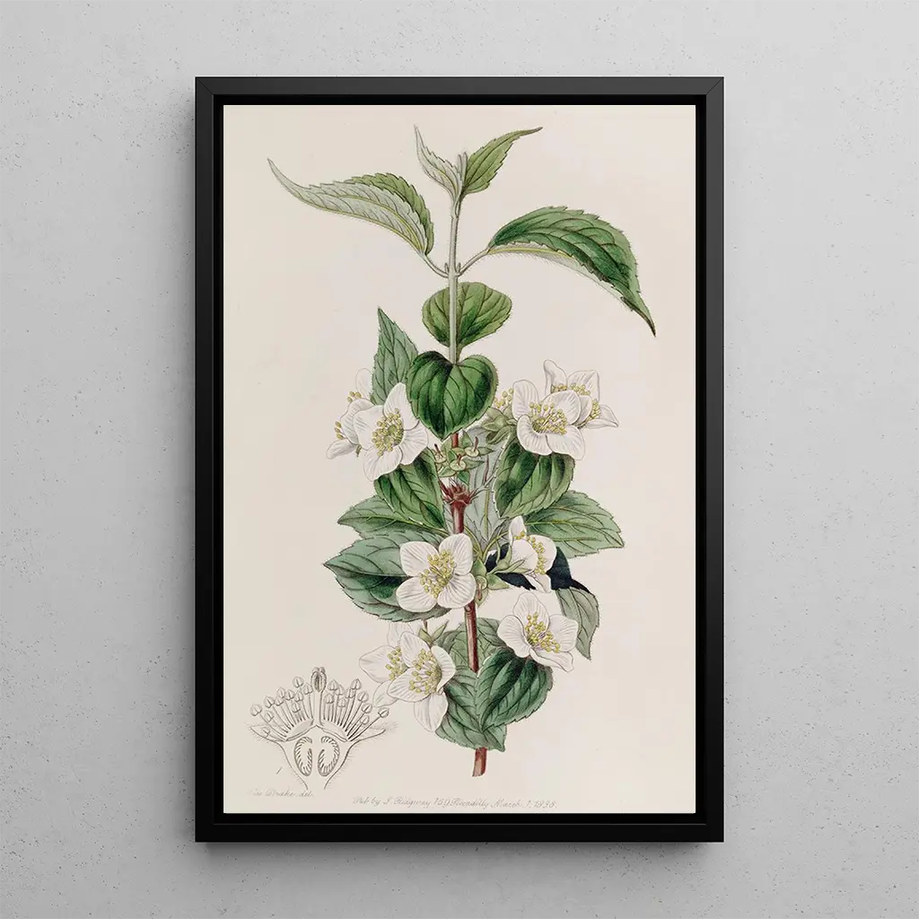 Konsttrycket Syringa velu av Sydenham Edwards fångar den delikata essensen av denna växt. Med sina mjuka nyanser av lila och vitt framkallar detta konsttryck en atmosfär av lugn och harmoni. De noggranna detaljerna i blommorna, återgivna med akvarellteknik, känns nästan påtagliga och bjuder in betraktaren att fördjupa sig i en hemlig trädgård. Färgernas glans, i kombination med den lätta kompositionen, skapar en visuell harmoni som förflyttar betraktaren till en värld av naturlig skönhet.