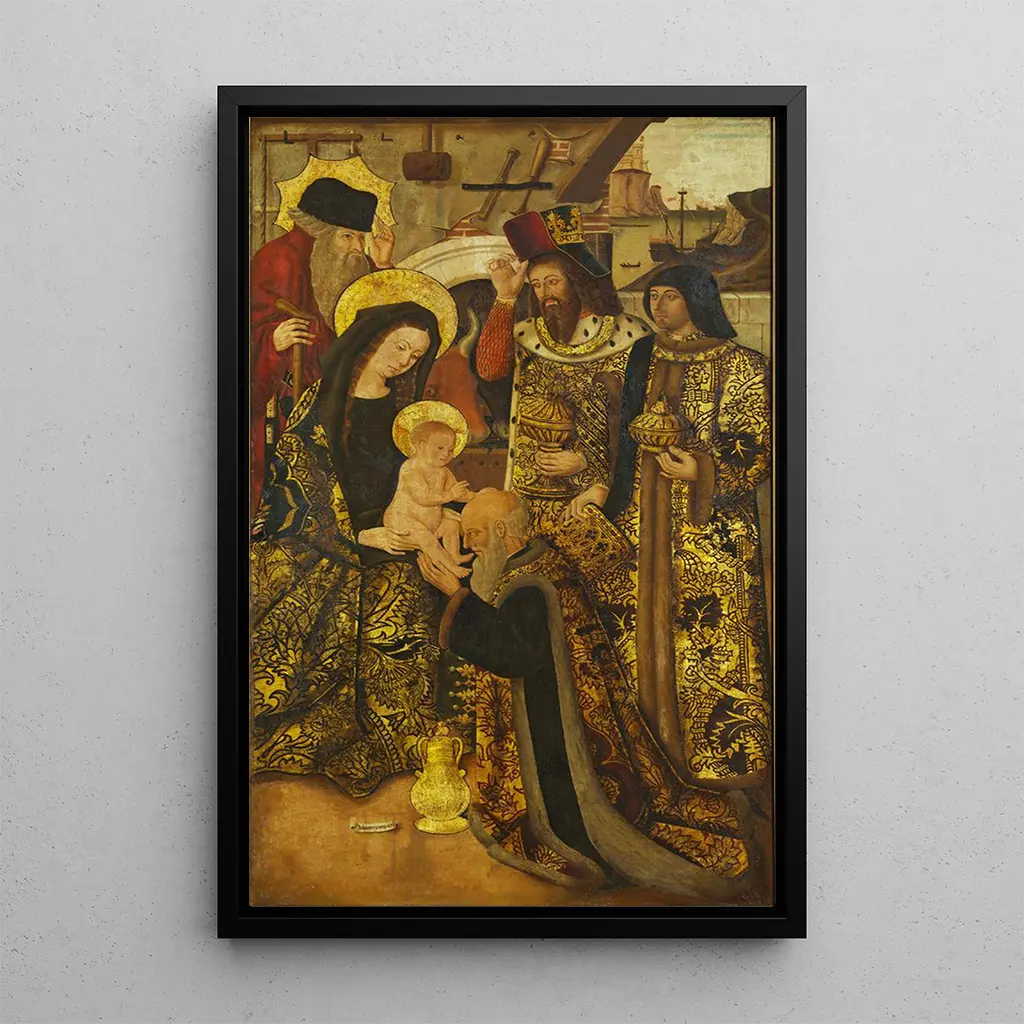 L'Adoration des Mages är ett konsttryck som fångar själva essensen av kristen vördnad genom en rik färg- och detaljrik komposition. Magerna, klädda i praktfulla dräkter, böjer sig inför Jesusbarnet, vars ljus tycks stråla ut över scenen. De gyllene nyanserna och blå tonerna skapar en atmosfär som är både himmelsk och jordisk, medan karaktärernas ansikten uttrycker djup vördnad. Juan Pons teknik, som blandar realism och barockelement, ger liv åt denna framställning och bjuder in betraktaren att känna magin i detta heliga ögonblick.