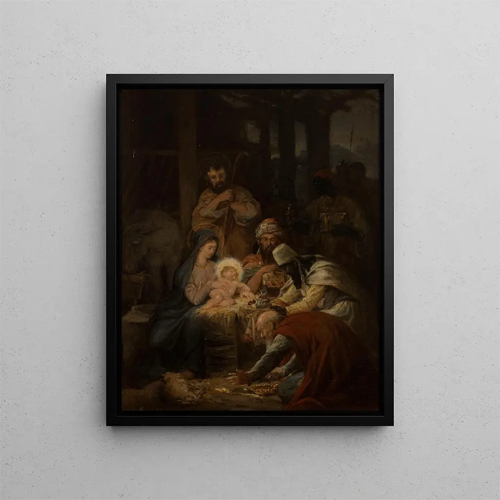 Kunglig reproduktion av "Adorationen av de vise männen" av Oscar Pierre Mathieu – en elegant konsttryck för att förhöja ditt hem. Denna konstnärliga reproduktion fångar den tidlösa scenen med fin detaljrikedom och konstnärlig precision. Perfekt för konstälskare och samlare som vill ha en sofistikerad dekoration. Mätningar: L 50 x H 70 cm. Levereras i hög kvalitet för att säkerställa en vacker presentation. Beställ nu och förvandla ditt utrymme med denna magnifika konstnärliga reproduktion.