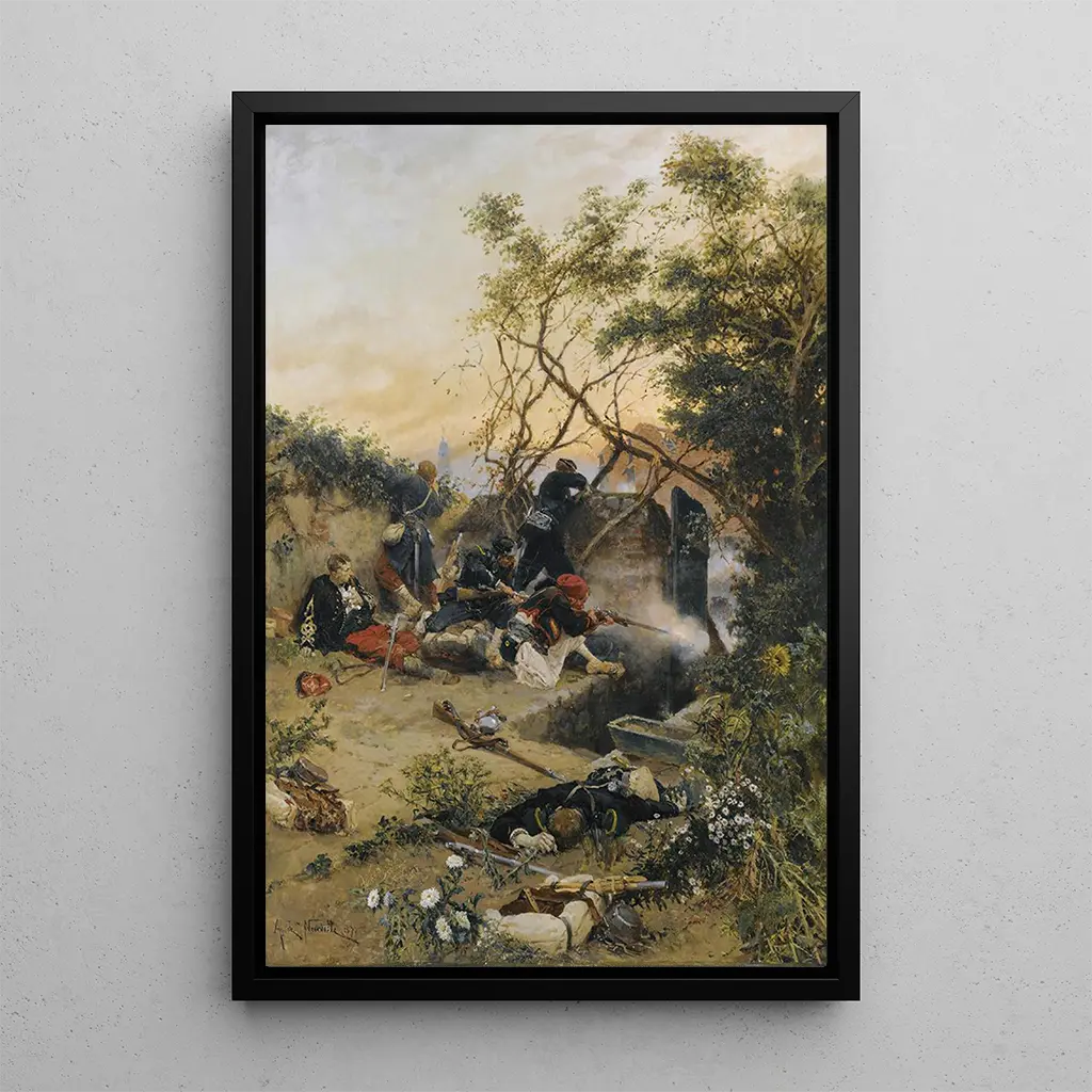 Alphonse Marie de Neuville, fransk målare från 1800-talet, är känd för sina skildringar av militära och historiska scener. Hans engagemang för realism och hans intresse för samtida händelser har gjort det möjligt för honom att fånga andan i sin tid. Påverkad av konflikterna under sin epok, lyckades han översätta tapperheten och hjältemodet hos soldaterna genom sina verk. De Neuville var också involverad i stora projekt och bidrog till att illustrera den franska militära historien. Hans verk, rikt på känslor och detaljer, fortsätter att inspirera och fascinera konstälskare.
