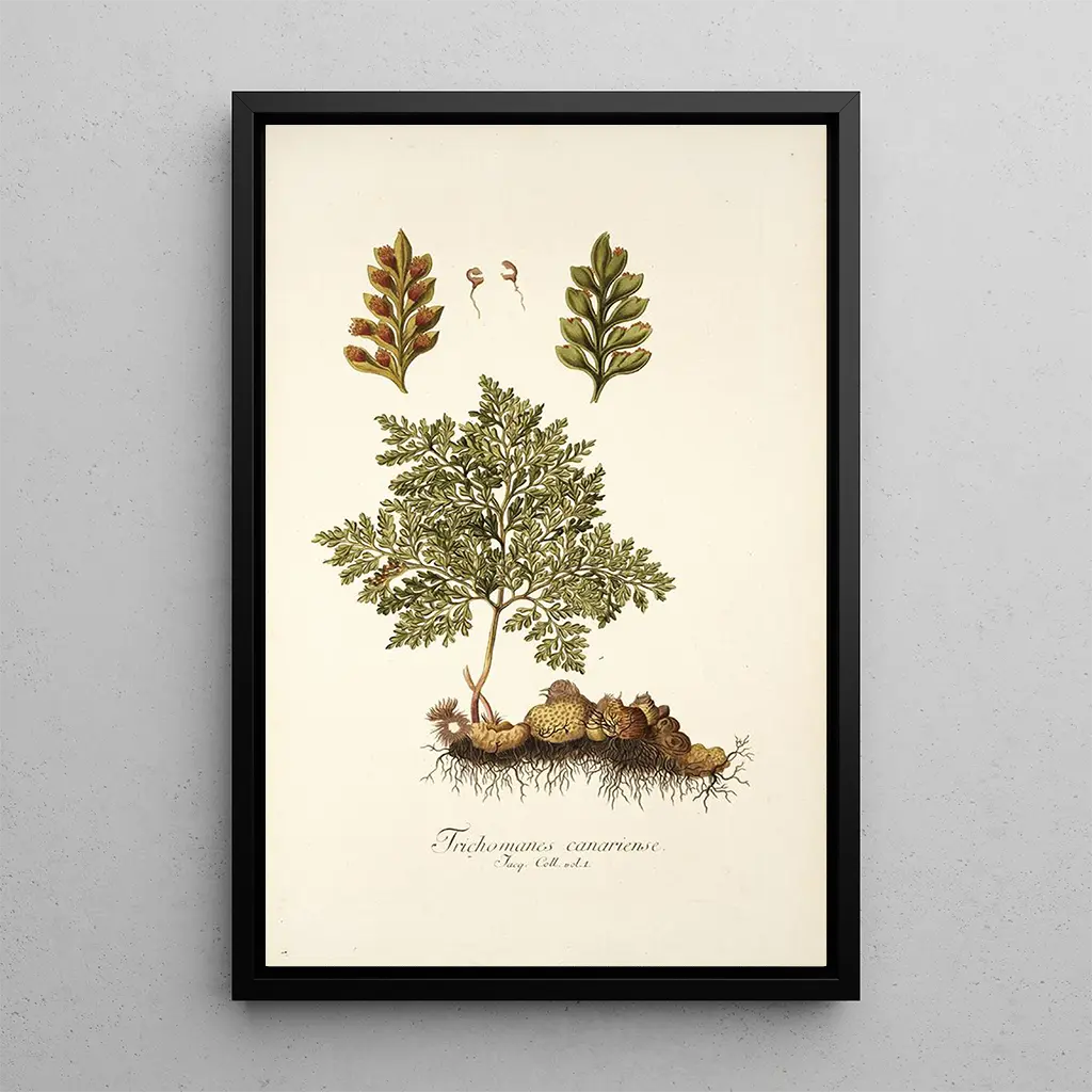 Konsttrycket av Trichomanes canariense är ett perfekt dekorativt inslag för att tillföra naturens skönhet till ditt hem. Oavsett om det är i vardagsrummet, på kontoret eller i sovrummet, förmedlar detta konsttryck lugn och skönhet i den växtliga världen. Dess utskriftskvalitet och färgåtergivning gör det till ett attraktivt val för konstälskare och botaniker. Genom att integrera detta konsttryck i din inredning skapar du en rofylld och inspirerande atmosfär, samtidigt som du hyllar den biologiska mångfaldens rikedom.