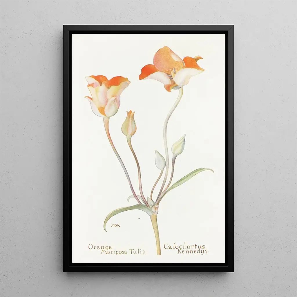 Konsttrycket "Tulipán mariposa orange" av Margaret Armstrong är en livfull hyllning till naturen. Verket framhäver tulpanen i all sin prakt, med blommor i strålande orange nyanser som fångar ljuset på ett slående sätt. Den delikata tekniken av konstnären, som kombinerar akvarell och teckning, skapar en glad och livfull atmosfär. Varje detalj, från konturerna av blommorna till de subtila nyanserna, inbjuder till noggrann eftertanke och avslöjar den flyktiga skönheten hos denna ikoniska blomma.