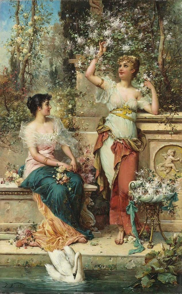 Hans Zatzka, verksam i slutet av 1800-talet och början av 1900-talet, är en österrikisk konstnär erkänd för sina verk fyllda av romantik och sensualitet. Påverkad av symbolismen har han lyckats fånga vardagliga ögonblick med en touch av magi. Hans målningar, ofta fyllda av kvinnliga figurer, speglar en delikat och raffinerad estetik, typisk för sin tid. Zatzka har lyckats etablera sig inom konstvärlden tack vare sin förmåga att skapa poetiska atmosfärer, vilket gör honom till en oumbärlig figur inom viennese konst.