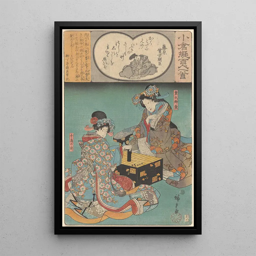 Andō Hiroshige, l'un des plus grands artistes du mouvement ukiyo-e, a su immortaliser la beauté éphémère de la vie quotidienne au Japon du XIXe siècle. Né en 1797, il a été influencé par les paysages naturels et la culture urbaine de son époque. Son style se caractérise par une attention minutieuse aux détails et une utilisation innovante des couleurs. Hiroshige a su capturer l'essence des saisons et des moments fugaces, faisant de ses œuvres des témoignages précieux de la société japonaise. "Deux femmes jouant à un jeu" s'inscrit dans cette tradition, illustrant non seulement la vie des femmes de l'époque, mais aussi l'importance des interactions sociales dans la culture japonaise.