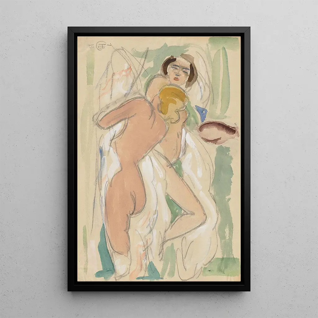 Deux konsttryck av kvinnliga nakna kroppar: en hyllning till kvinnlig skönhet I "Två kvinnliga nakna kroppar" fördjupar Hermann Lismann oss i en värld där sensualitet och ömhet möts. Modellernas kroppar, poserade med grace, är inbäddade i mjuka och varma färger som framkallar en intim atmosfär. Lismanns teknik, som blandar olja och subtila penseldrag, gör det möjligt att fånga ljuset och skuggorna på ett sätt som ger liv åt konstverket. Varje kurva framhävs av delikata nyanser, vilket skapar en visuell harmoni som inbjuder till eftertanke. Detta konsttryck är en hyllning till kvinnlighet, där varje detalj är noggrant utvald för att fira den naturliga skönheten i formerna. Hermann Lismann: en mästare på kvinnlig representation under 1900-talet Hermann Lismann, konstnär av tysk härkomst, har lyckats göra avtryck i konstvärlden tack vare sin unika approach till måleri. Aktiv i början av 1900-talet, påverkades han av de konstnärliga rörelserna under sin tid, särskilt symbolism och impressionism. Hans arbete utmärks av ett särskilt fokus på kvinnokroppens framställning, ofta betraktad som en inspirationskälla och ett mysterium. Lismann lyckades fånga essensen av sina modeller och förvandla dem till tidlösa figurer som överskrider epoker. Hans bidrag till modern konst är obestridligt, och "Två kvinnliga nakna kroppar" är ett utmärkt exempel. En dekorativ konsttryck med många fördelar Konsttrycket av "Två kvinnliga nakna kroppar" är ett dekorativt föremål som kommer att berika vilket utrymme som helst, vare sig det är ett vardagsrum, ett kontor eller ett sovrum. Dess tryckkvalitet garanterar en enastående trohet mot färger och detaljer i originalverket, vilket gör det möjligt att njuta av Lismanns estetik i ditt hem. Detta konsttryck fångar blickar och väcker samtal, samtidigt som det tillför en touch av elegans och sofistikering till din inredning. Genom att välja denna väggbonad, väljer du ett konsttryck som kombinerar konstnärlig skönhet med tidlös charm, perfekt för att försköna din vardag.