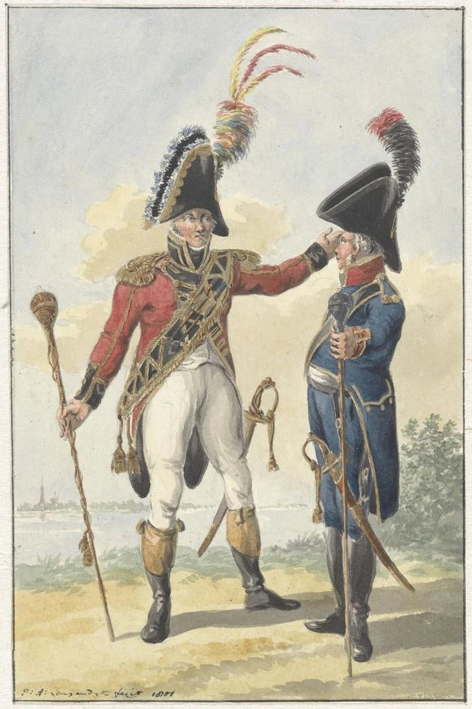 Konsttryck | Två officerare stående - Jan Anthonie Langendijk