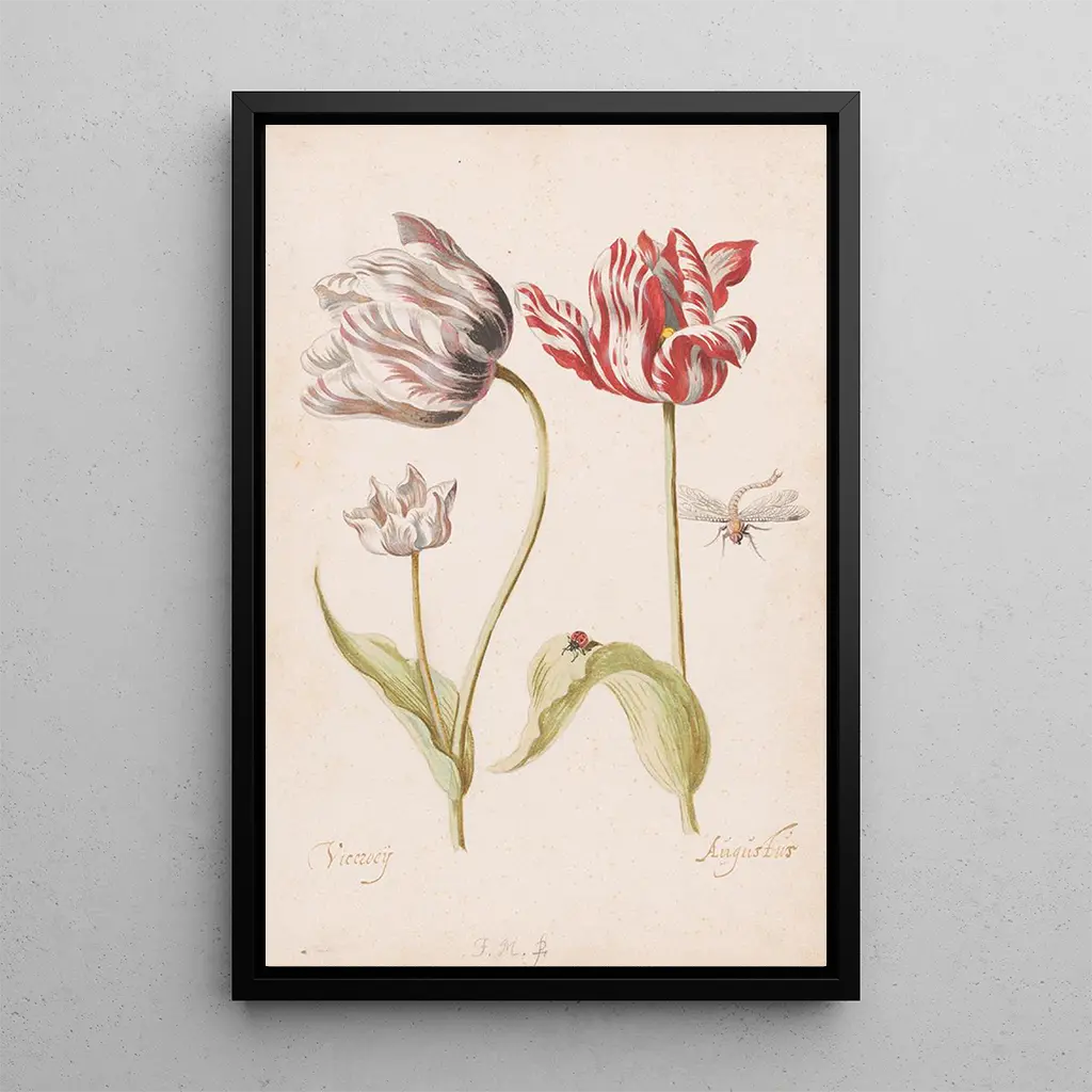 Konsttryck | Två tulpaner med insekter - Jacob Marrel