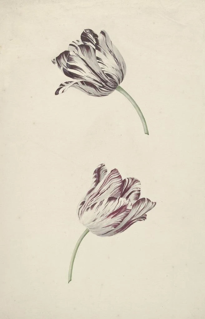 Konsttryck | Två vita och röda tulpaner - Jan Jansz van der Vinne