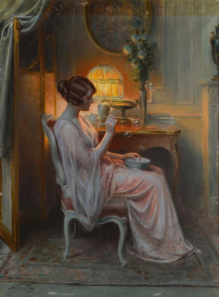 Delphin Enjolras verk utmärker sig genom sin imponerande stil, där varje detalj är noggrant genomtänkt. Konsttrycket av flytande bubblor, delikata och genomskinliga, återges med sådan precision att man nästan kan höra det lätta knastrandet av deras sprickor. Färgpaletten som konstnären valt, med mjuka och pastellfärger, framkallar friskheten av en solig dag. Kompositionen är harmonisk, varje element är placerat med en känsla av balans som drar blicken mot konstverkets centrum. Enjolras lyckas skapa en drömaktig atmosfär, där lättheten av bubblorna kontrasterar mot världens allvar omkring dem. Detta konsttryck är inte bara en representation, det är en inbjudan att känna, att minnas de enkla glädjeämnena i barndomen, samtidigt som det erbjuder en reflektion över lycka som är flyktig.