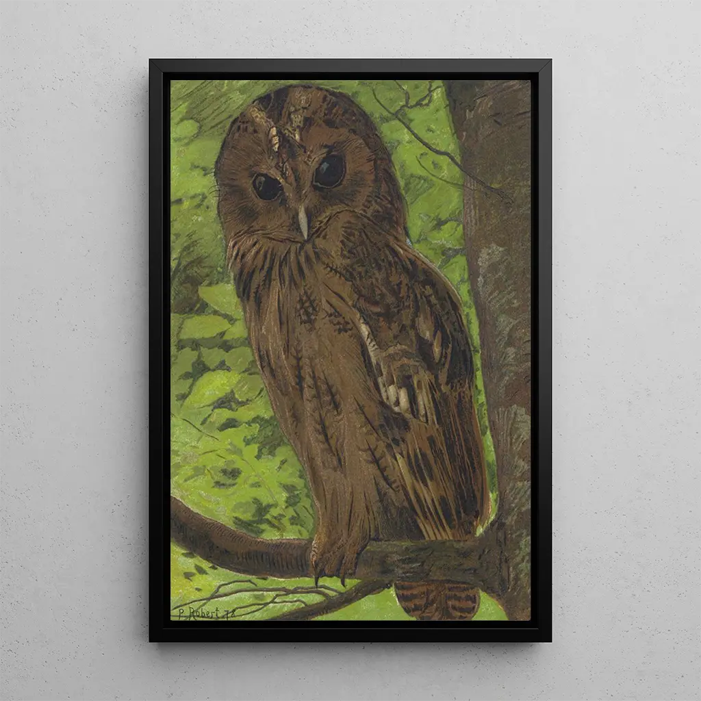 Léon Paul Robert, verksam under 1800-talet, är erkänd för sina verk som hyllar skönheten i faunan. Påverkad av naturalismen och romantiken, har han lyckats fånga djurlivet med en anmärkningsvärt precision och känslighet. Hans verk, ofta präglade av en poetisk atmosfär, vittnar om en tid då konst och vetenskaplig observation av naturen gick hand i hand. Robert har lyckats framkalla känslor genom sina skildringar av djur, och placerade konsttrycket av Chouette hulotte bland hans mest ikoniska verk, vilket understryker vikten av att bevara faunan.