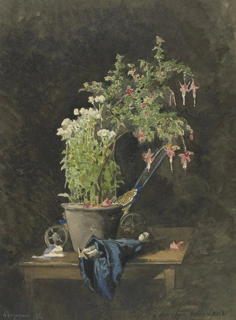 Un fuchsia en pot avec des jouets pour enfants - Henri-Joseph Harpignies
