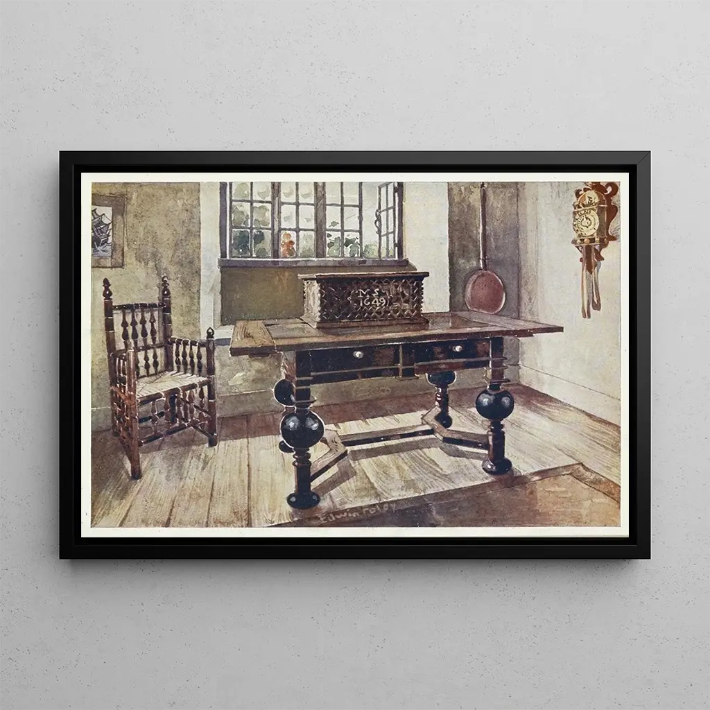 Dans cette reproduction d'Un salon de colons virginien précoce, Edwin Foley nous plonge au cœur de la vie quotidienne des colons au XVIIIe siècle. La composition met en avant une pièce chaleureuse, où les lumières tamisées créent une atmosphère intimiste. Les couleurs terreuses, mêlant des nuances de brun et de vert, évoquent la simplicité et l'authenticité de l'époque. La technique de Foley, qui utilise des coups de pinceau délicats, donne vie aux détails, des visages expressifs aux objets du quotidien, rendant cette scène à la fois vivante et touchante.