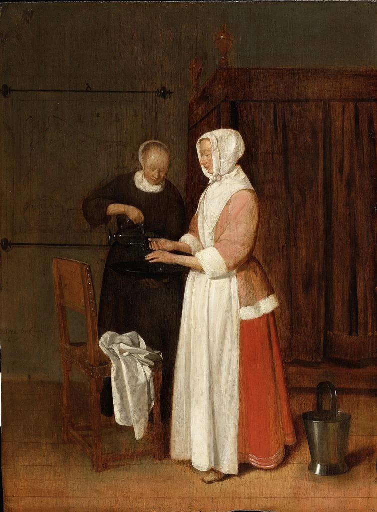 Une femme se lave les mains - Quirijn van Brekelenkam