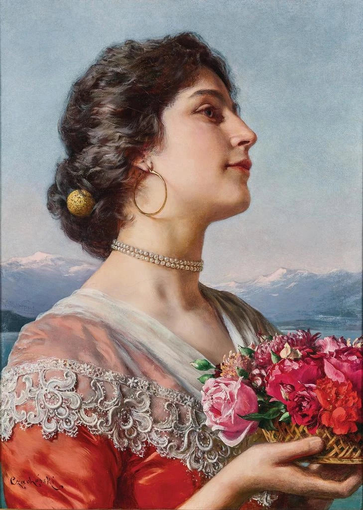 Władysław Czachórski, verksam under 1800-talet, är en polsk konstnär vars verk speglar de sociala och estetiska frågor som präglade hans tid. Uppvuxen i en kontext där realism och romantik samexisterade, lyckades han dra nytta av dessa influenser för att skapa porträtt fyllda av känslighet. Hans arbete framhäver ofta kvinnliga figurer, symboler för skönhet och sårbarhet. Genom att hämta inspiration från vardagslivet och polska traditioner, lyckades Czachórski bevara ögonblick av ömhet och enkelhet, vilket gör Ung blomsterförsäljerska till ett emblematiskt verk i hans repertoar.