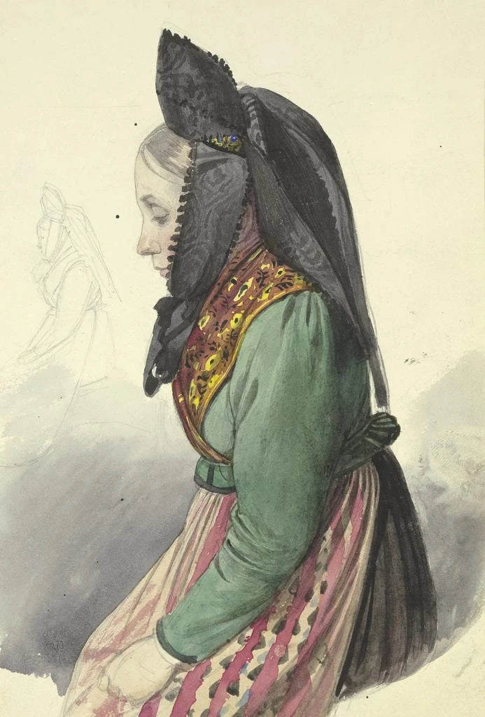 I "Jeune lantbrukare åt vänster" fångar Jakob Becker essensen av ett äkta lantliv. Kompositionen framhäver en ung kvinna, klädd i en traditionell dräkt, som vänder sig lätt mot vänster och ger ett tankfullt blick. De jordnära färgerna, dominerade av nyanser av grönt och brunt, återspeglar den omgivande naturen och enkelheten i lantlivet. Beckers teknik, som blandar realism och impressionistiska inslag, skapar en varm och intim atmosfär, som inbjuder betraktaren att känna lugnet i detta enkla liv.