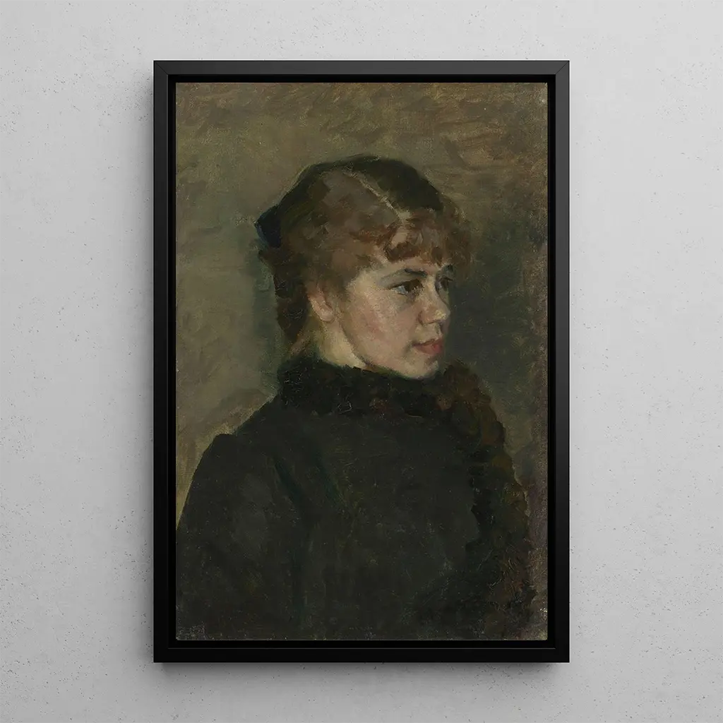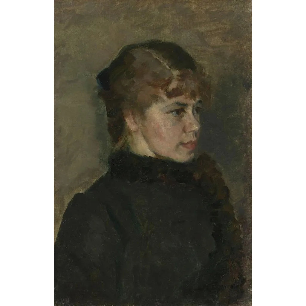 I detta fängslande verk presenterar Christian Krohg en ung kvinna med en eftertänksam blick, inbäddad i ett mjukt och varmt ljus. Kompositionen, som är både enkel och uttrycksfull, framhäver hennes ansikts fina drag och den flytande rörelsen i hennes hår. Pastellfärger, som blandar nyanser av rosa och blått, skapar en intim, nästan drömlik atmosfär. Olje-målningstekniken, utförd med fin precision, tillför en rik textur som fångar ögat och inbjuder till eftertanke. Detta konsttryck, en sann spegling av konstnärens känslighet, för oss in i ett ögonblick av ömhet och poesi.